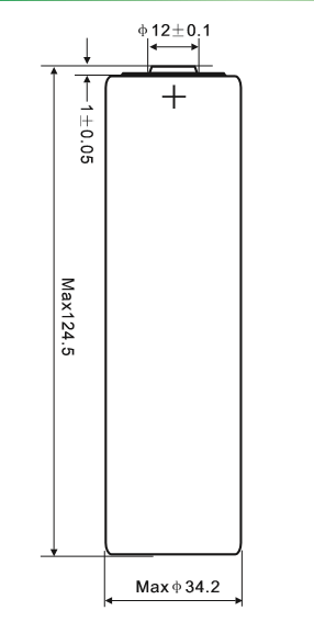 | 2/3A | ER17335M | φ17.0X33.5 | 21 | 3.6 | 2 | 1700(5mA) | 500 | 1000 |